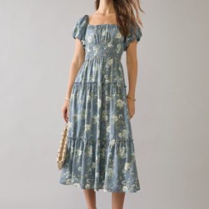 Smock Top Tiered Floral Midi Dress