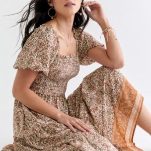 Smocked Floral Midi Dress